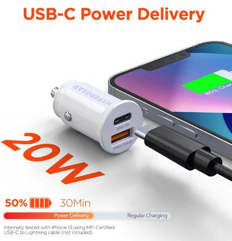 CARGADOR HYPERGEAR PARA CARRO DE DOS PUERTOS 18W-20W