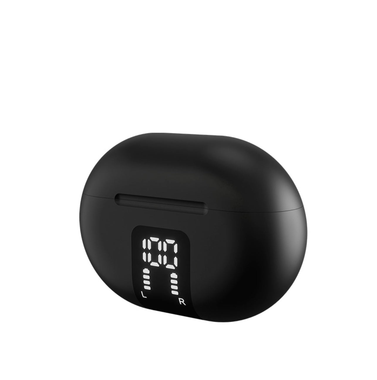 - Estuche de carga con capacidad para hasta 4 ciclos de carga completos, con pantalla LED que muestra el nivel de batería y el estado de carga en tiempo real de cada audífono.