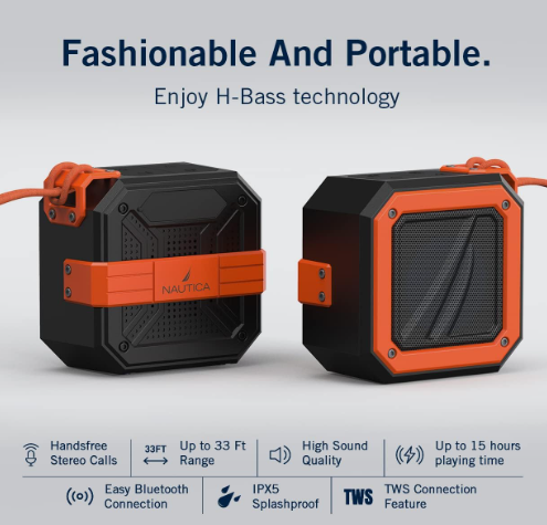 Equipado con un driver dinámico de 52 mm y una potencia de salida de 5W RMS (15W PMPO), Nautica S100 ofrece un sonido claro, equilibrado y envolvente. Además, cuenta con la función TWS (True Wireless Stereo), que permite emparejar dos altavoces para disfrutar de una experiencia de audio estéreo real.